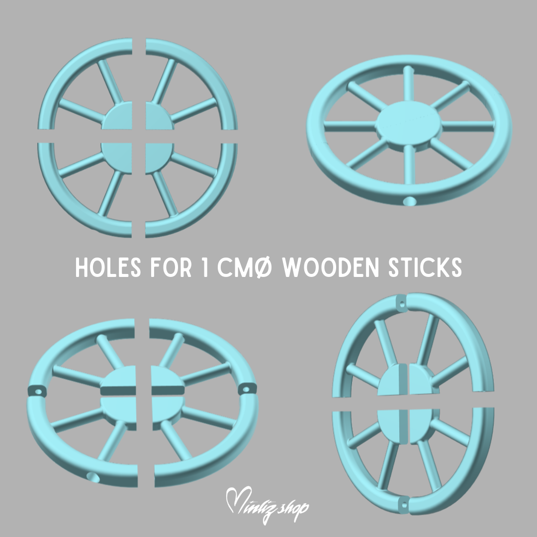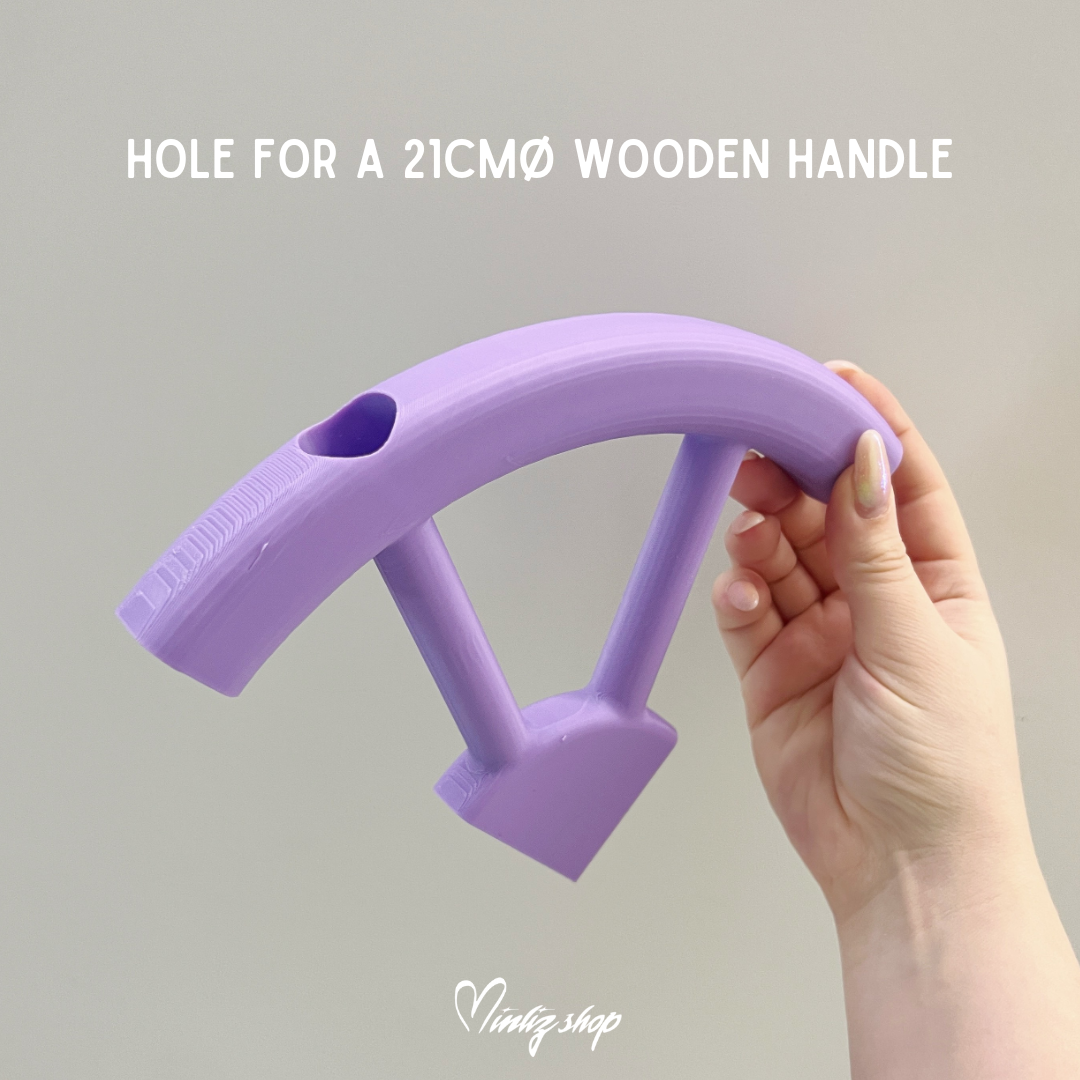 Handle and wooden stick are not included in the 3d model. You will need a 21mm diameter Wooden pipe for the handle as well as 10mm diameter wooden sticks to assemble everything.